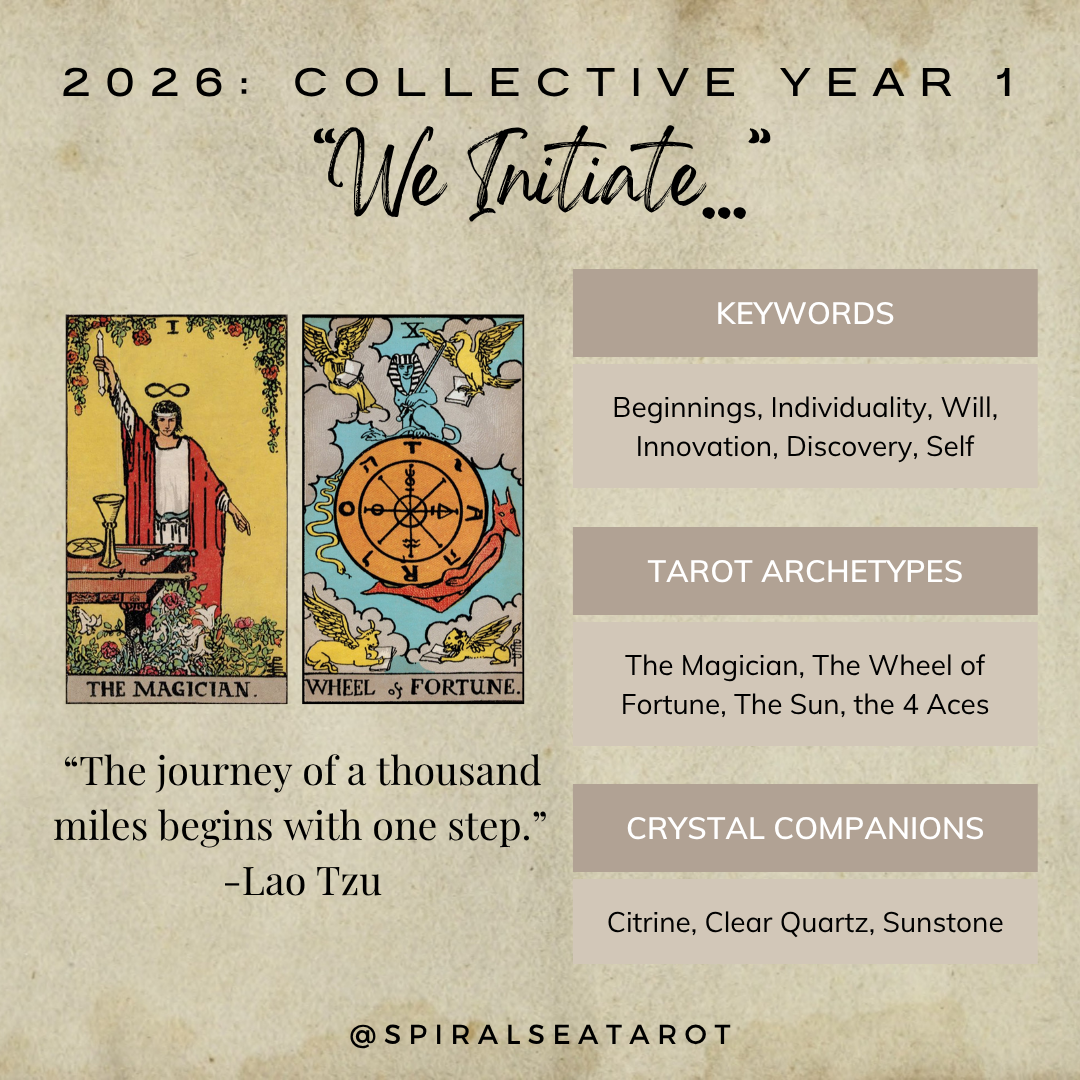 Ultimately, 2026 is a year to step forward boldly, to take ownership of our path, and to embrace the excitement and potential that comes with new beginnings. The collective is asking each of us to participate in shaping the cycle to come, individually and together. We may all have our unique way of going about things, so the challenge will be figuring out where our individual efforts complement the whole. But remember also, this is only Year 1! Be open to shifts, pivots and surprises - not everything will go according to plan, nor should it.